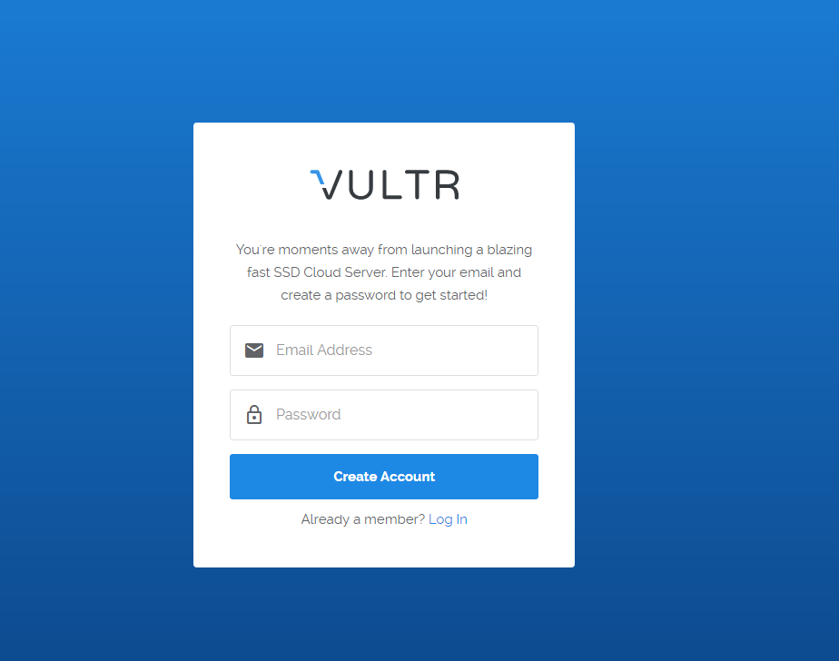 第一步:登录vultr官网注册一个账户,只需要一个邮箱和密码即可。然后到你注册的邮箱中去验证你的账户。