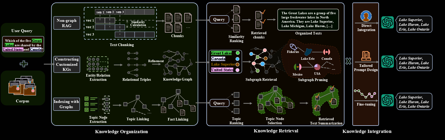 首先构建一个图结构来组织知识,然后检索和集成与查询相关的信息。下面对Sec.2 提到的范式展开具体介绍。