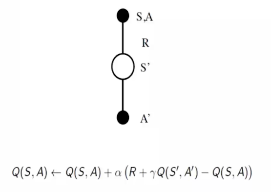 公式: $ Q(S,a) \leftarrow Q(S,a) + \alpha [R+\gamma max_{a’}Q(s’,a’)-Q(s,a)] $
