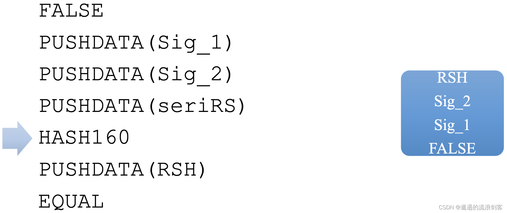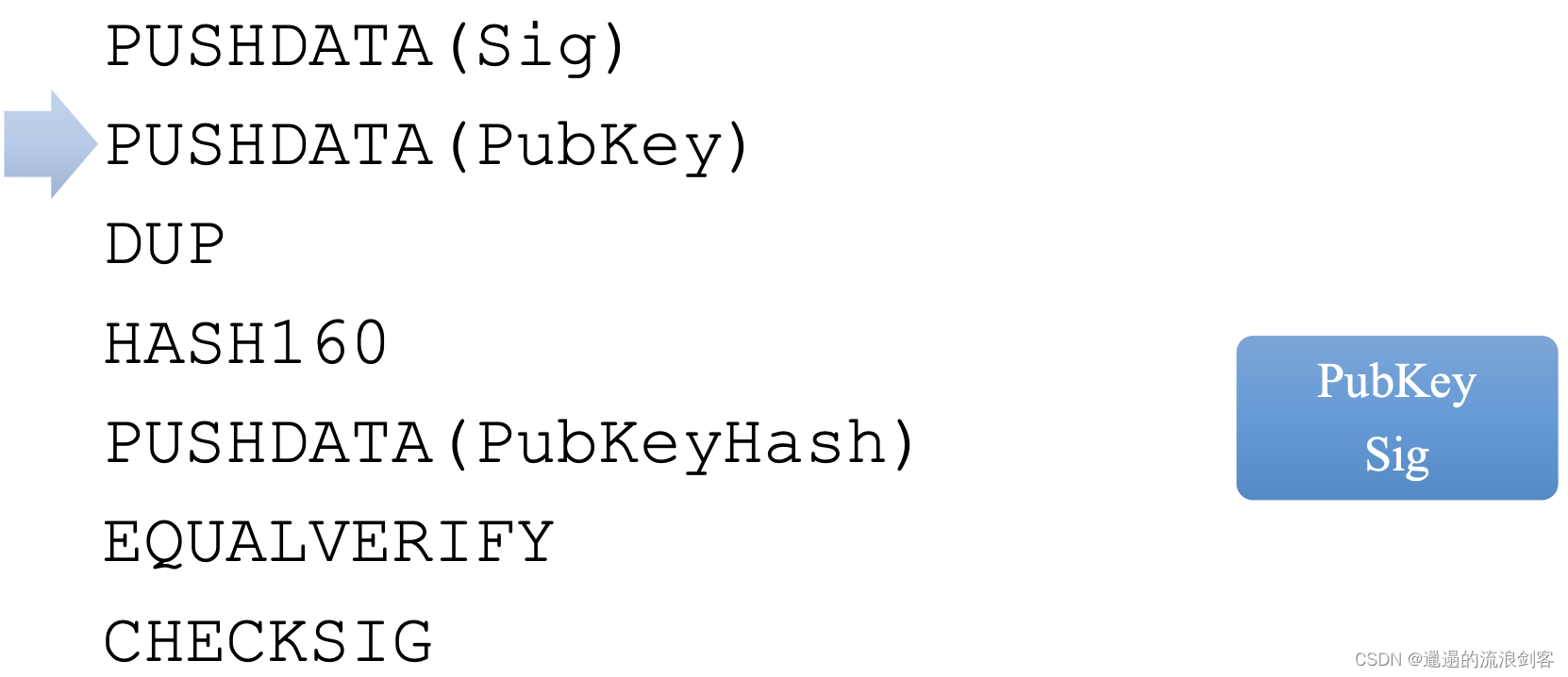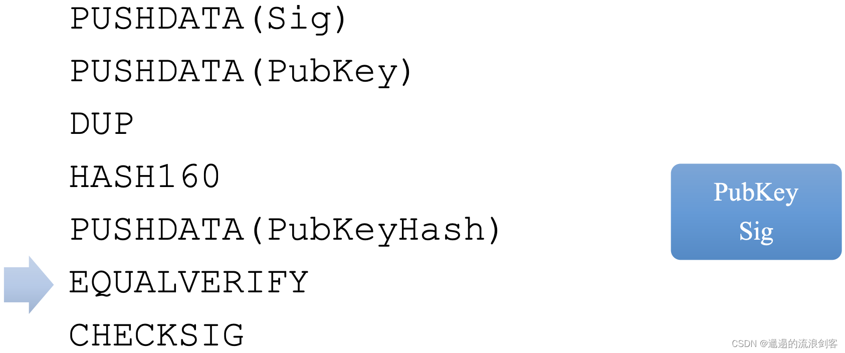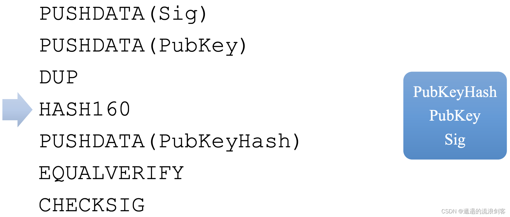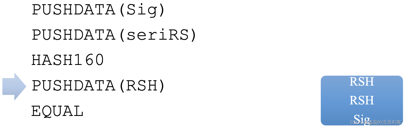 第四条语句,将栈顶元素取出来取哈希,再将得到的哈希值压入栈,所以栈顶的公钥变成了其哈希值