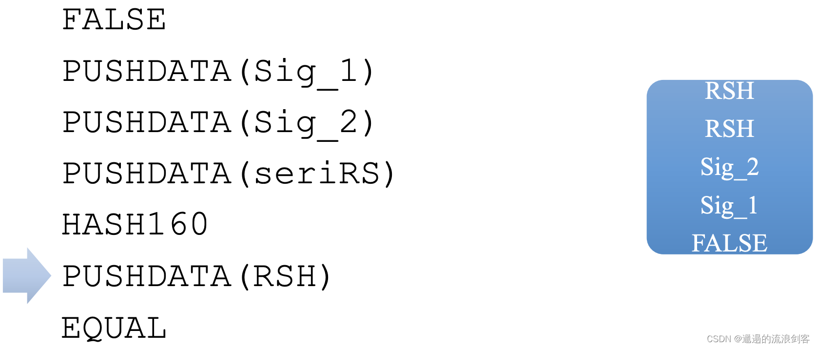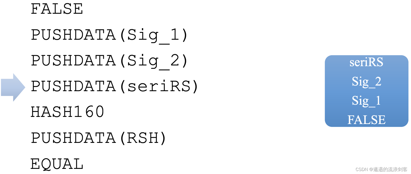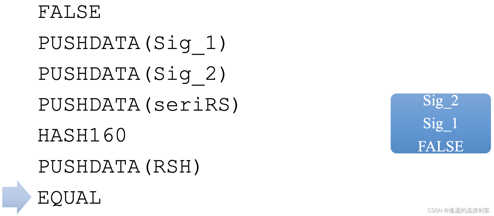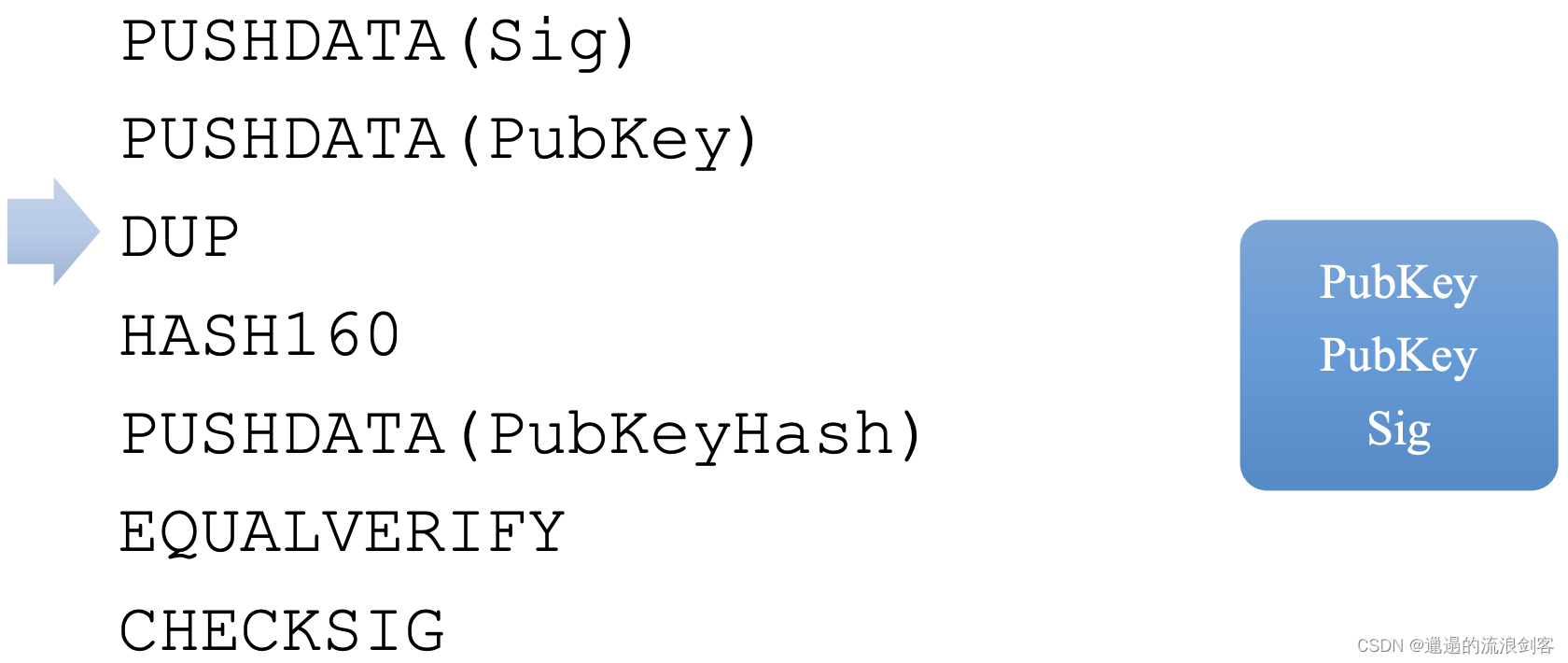第四条语句,将栈顶元素取出来取哈希,再将得到的哈希值压入栈,所以栈顶的公钥变成了其哈希值
