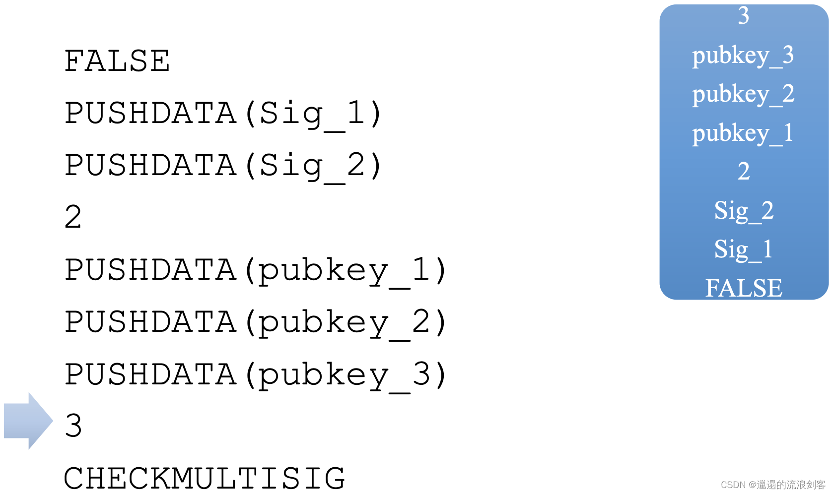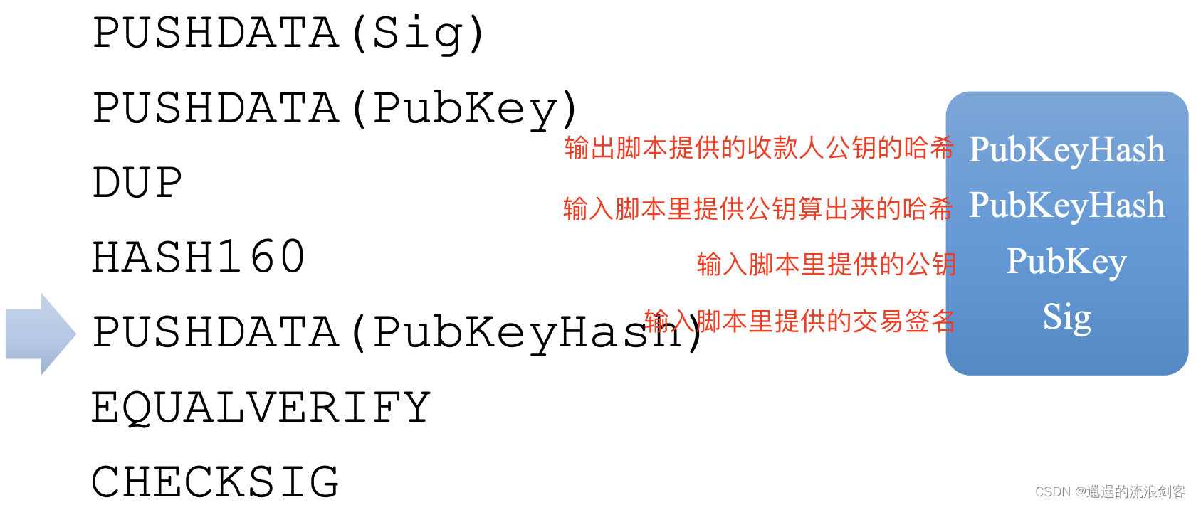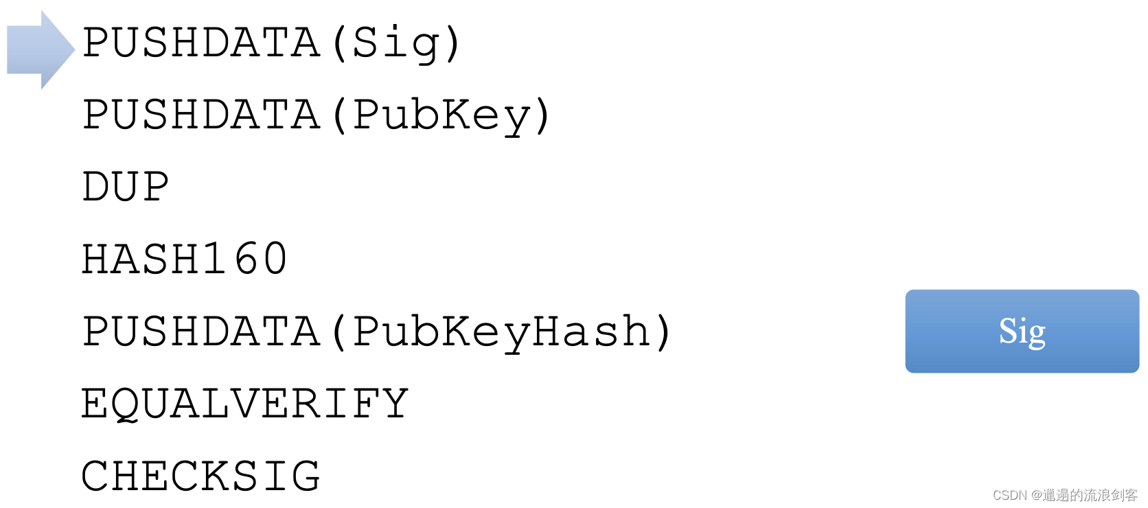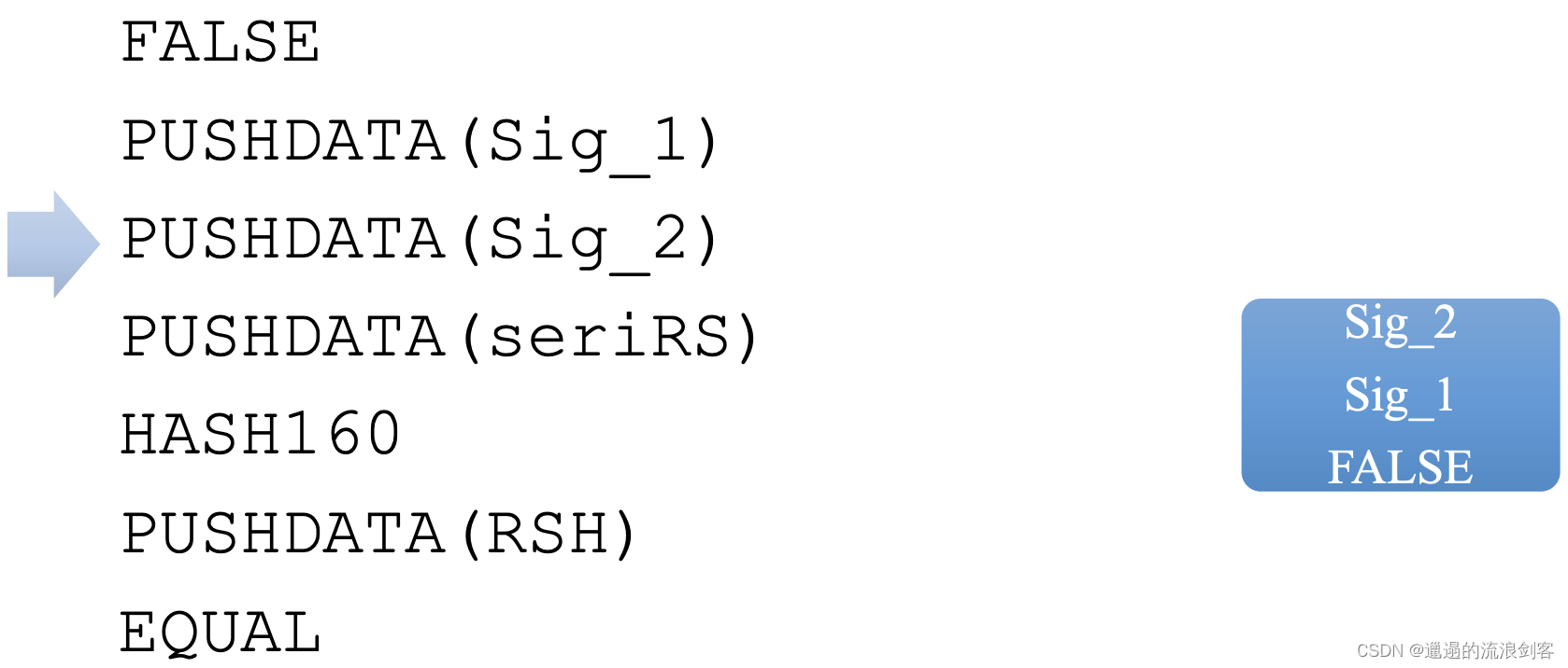 第四条语句,将栈顶元素取出来取哈希,再将得到的哈希值压入栈,所以栈顶的公钥变成了其哈希值