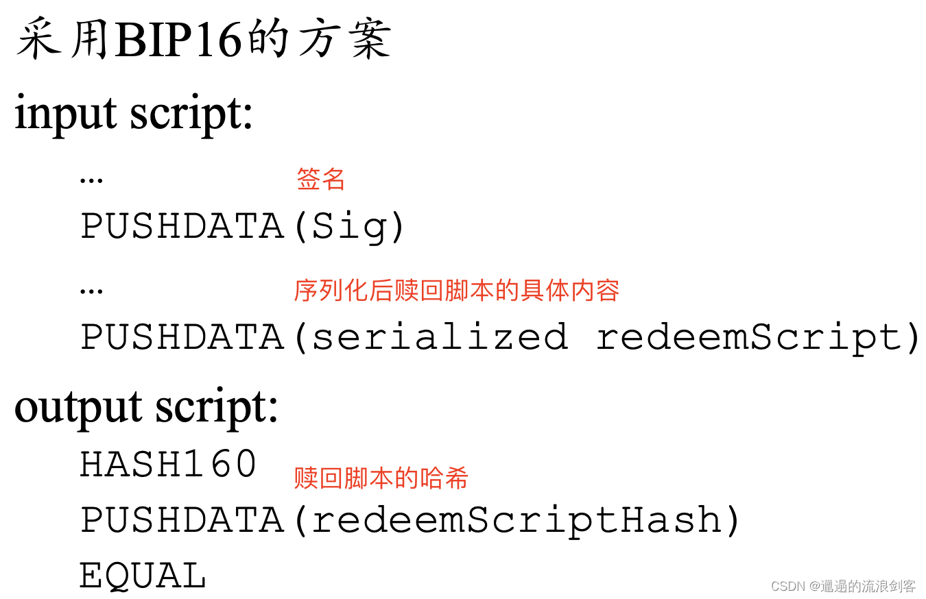 - 验证输入脚本给出的赎回脚本内容,是否和对应输出脚本给出的赎回脚本哈希值相匹配