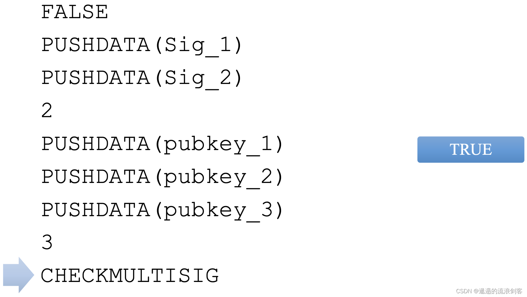 实际中的脚本,都需要加上OP前缀,如:CHECKSIG应该为OP_CHECKSIG