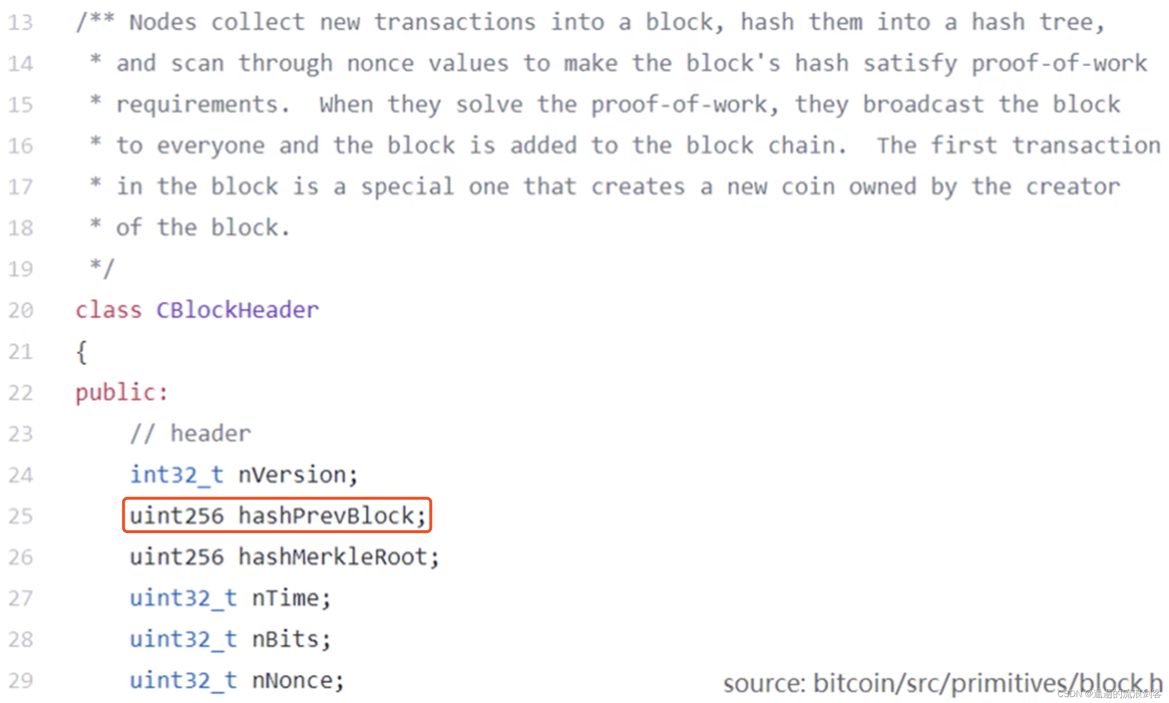 在block header中只有hash值,没有指针。那么如何查找到前一个区块的内容?