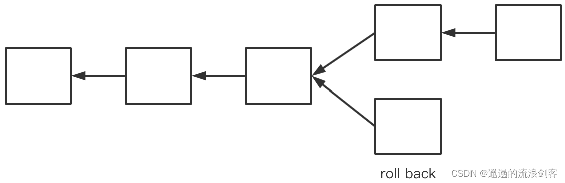 如上图,有个分叉,这两个节点同时获得记账权。这两个分叉最终上面那个胜出了,下面这个分叉的节点这个时候就要回滚(roll back),就是这个节点当前的状态,就接受了下面这个节点的状态要取消掉,退回到上一个节点的状态,然后沿着上面那条链往下推进