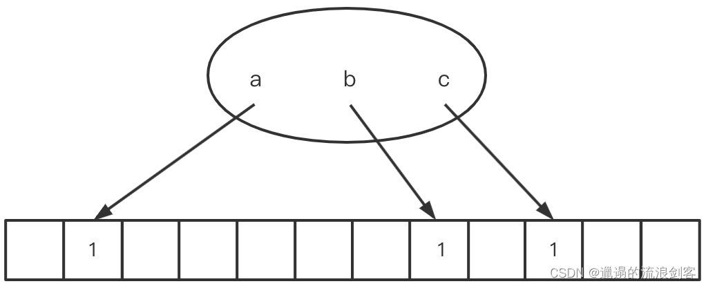 bloom filter不支持删除操作,比如把a删掉了,对应的向量1要不要改,如果改成0的话,集合中可能有另外一个元素也映射到这个位置(哈希碰撞是有可能的),所以简单的bloom filter是不支持删除操作的。如果要支持删除操作,这个地方就不能是0和1了,得改成一个计数器,记录这个位置有多少个元素映射过来,而且还要考虑到计数器会不会溢出,这样数据结构就复杂得多了,和当初设计bloom filter的初衷是相违背的